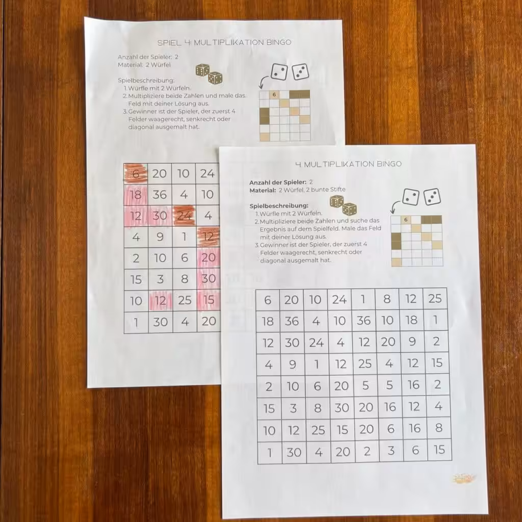 Mit den 20 Spielen aus meinem Materialpaket wird das kleine Einmaleins zum Abenteuer. Dein Kind kann mit Brettspielen, Bewegungsspielen und kreativen Aufgaben die Reihen festigen, ohne dass es sich nach Lernen anfühlt.
