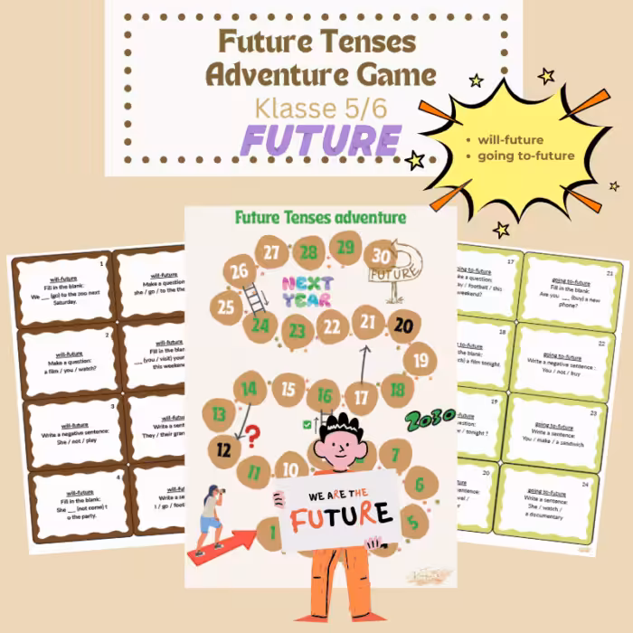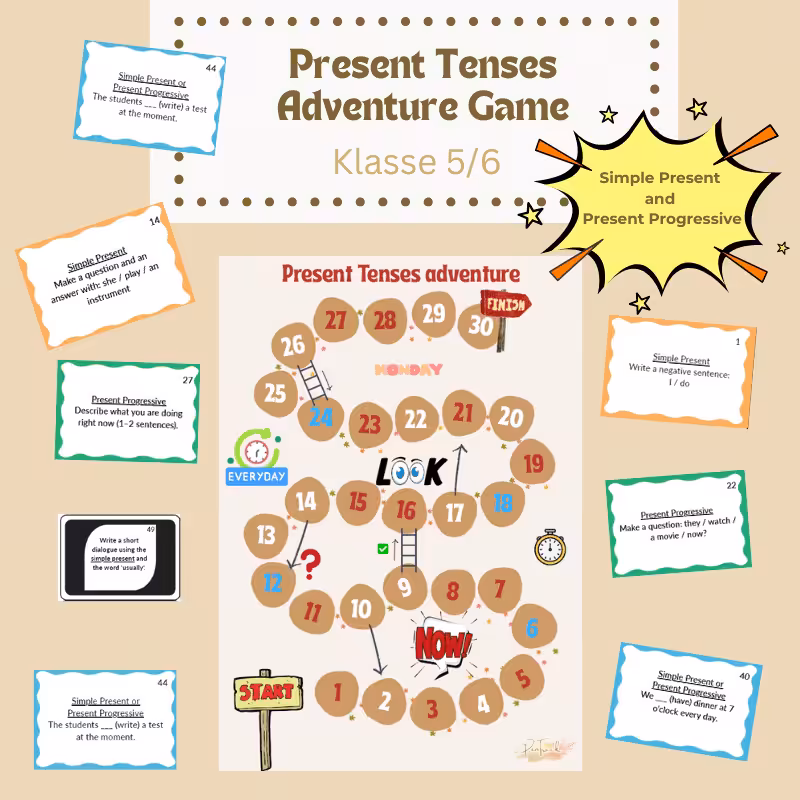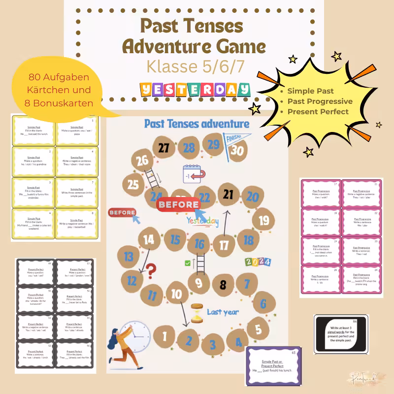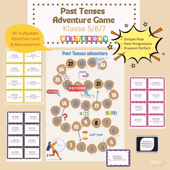 📥 Einfach downloaden, ausdrucken – und losspielen! Let’s go – Englische Zeitformen können Spaß machen!