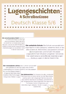 - Schreibanlässe: Vier Schreibanlässe zu Lügengeschichten regen die Kreativität der Schülerinnen und Schüler an. Ideal, um kreatives Schreiben zu üben und außergewöhnliche Geschichten zu verfassen.