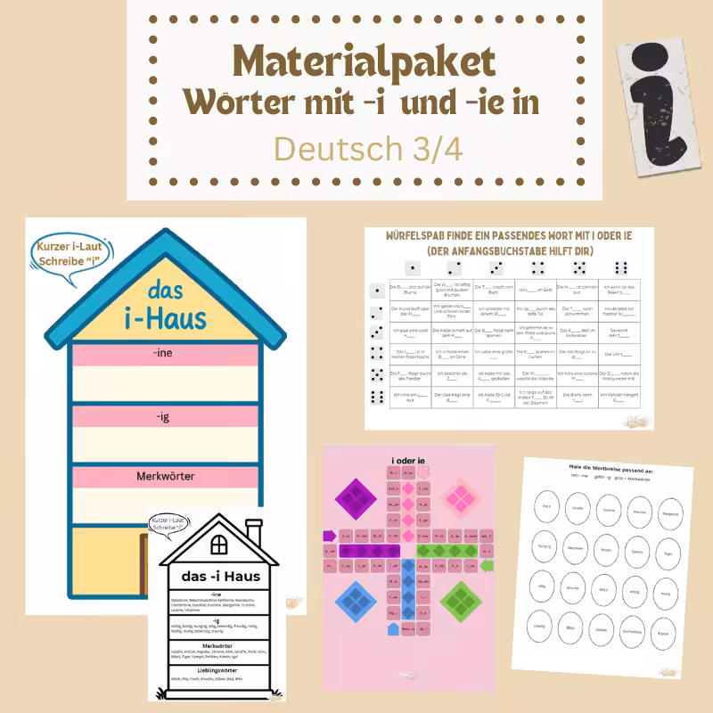 Das bekommst du im Materialpaket Rechtschreibung üben Wörter mit i und ie: