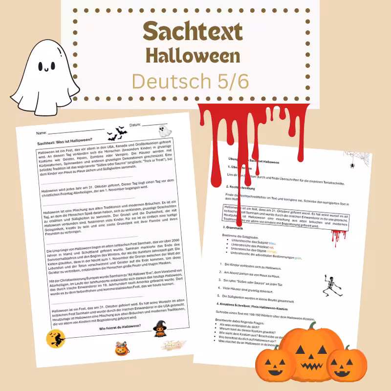 Du suchst nach einem Lernmaterial, das dein Schulkind dabei unterstützt, seine Lesekompetenz und das Textverständnis zu verbessern, und das auch noch zu einem Thema, das Kinder begeistert? Dann ist der Sachtext “Was ist Halloween?” für die Klasse 5/6 genau das Richtige!🎃