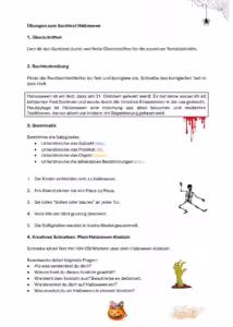Hier siehst du konkrete Übungen aus dem Materialpaket Warum feiern wir…? Der Sachtext zum Tag der Jogginghose (Bild links), ganze konkrete Übungen zum Text Halloween (Bild Mitte) oder eine Übung zum Schreiben einer Textzusammenfassung (Bild rechts).