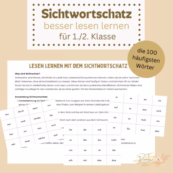 Hol dir jetzt das Materialpaket “Sichtwortschatz Klasse 1 und 2” und unterstütze dein Kind beim Aufbau einer soliden Basis für erfolgreiches Lesen und Schreiben!