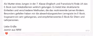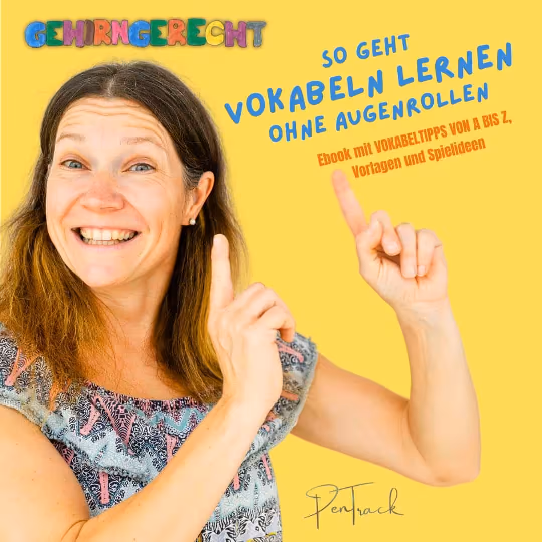 In meinem E-Book zeige ich dir, wie ihr das tägliche Vokabeltraining ganz spielerisch und gehirn-gerecht umsetzen könnt und zwar ohne 500 Wiederholungen.