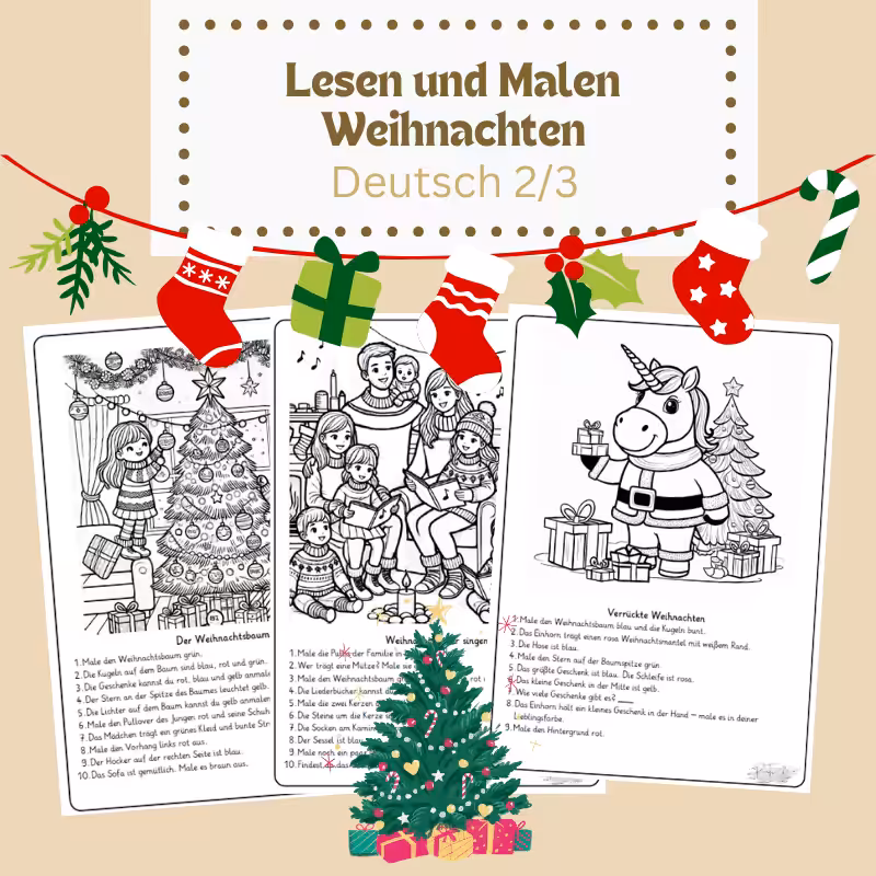 Die Weihnachtszeit steht vor der Tür und was gibt es Schöneres, als Lesen und Malen auf spielerische Weise zu verbinden? Mit diesem Materialpaket Weihnachten Lesen und Malen Klasse 2/3 kannst du deinem Kind die Adventszeit versüßen und gleichzeitig seine Lesekompetenz fördern. Das kreative Leseheft wäre auch etwas für den Nikolausstiefel 😉