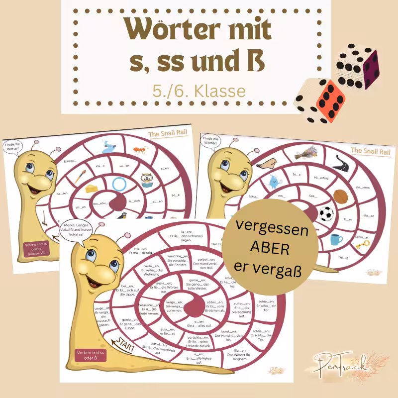 Dieses unterhaltsame Spiel ist ideal, um deine Rechtschreibkenntnisse zu vertiefen und gleichzeitig Spaß zu haben. Bei The Snail Rail dreht sich alles um die korrekte Verwendung von s, ss und ß in verschiedenen Wörtern.