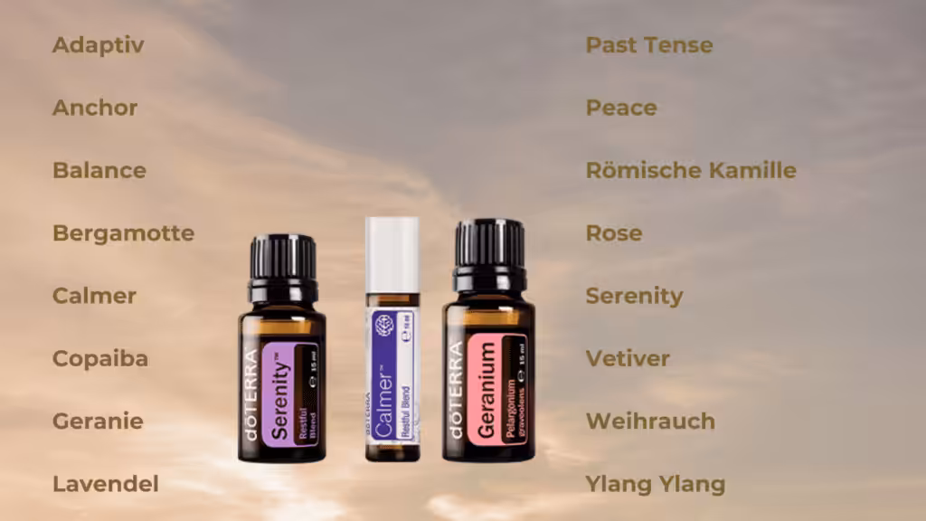 Ob du nach einem langen Arbeitstag zur Ruhe kommen und entspannen möchtest, Unterstützung bei der Konzentration suchst oder deinem Kind dabei helfen möchtest, den Anforderungen des Schulalltags gerecht zu werden – doTERRA Öle bieten vielfältige Möglichkeit, das Nervensystem zu beruhigen und eine entspannte Atmosphäre zu schaffen. Durch die tägliche Verwendung dieser ätherischen Öle kannst du eine natürliche und harmonische Unterstützung für dich und deine Familie schaffen. Dadurch gehst du gelassener, klarer und ausgeglichener durch den Tag. Lass uns gemeinsam das vegetative Nervensystem beruhigen. Ich berate dich sehr gern persönlich dazu.